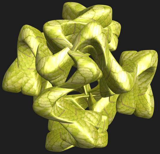 Keywords: mathematica 3d cg parametricplot3d texture torus 輪環 りんかん ドーナツ どーなつ 六芒星 ろくぼうせい 六光星 ろくこうせい 六稜星 ろくりょうせい code program algorithm コード プログラム アルゴリズム hexagram geometric sculpture geometricsculpture shape geometry sculpture mapping テクスチャ マッピング 模様 もよう abstract 抽象 ちゅうしょう アブストラクト design pattern デザイン パターン graphic グラフィック グラフィクス structure 意匠 構造 symmetry 対称性 たいしょうせい シンメトリー 対称 たいしょう algorithm コード black background indoor a = 6; (* center hole size of a torus *) b = 6; (* hexa-torus *) c = -6; (* distance from the center of rotation *) d = 4; (* number of torus *) h = 2; (* height of a torus *) SetOptions[ParametricPlot3D, PlotRange -> Full, Mesh -> None, Boxed -> False, Axes -> False, PlotPoints -> 400, ImageSize -> 3000, Background -> RGBColor[{30, 30, 30}/255], PlotStyle -> Directive[Specularity[White, 30], Texture[Import["D:/tmp/71.jpg"]]], TextureCoordinateFunction -> ({#4, #5 b Pi} &), Lighting -> "Neutral"]; f[v_] := Sin[2 Sin[Sin[Sin[v]]]]; x = (a - Cos[t] - Sin[b s]) Cos[s + Pi/b]; y = (a - Cos[t] - Sin[b s]) Sin[s + Pi/b]; z = (a - f[t] - h Sin[b s]) + c; rm = Table[{x, y, z}.RotationMatrix[2 i Pi/d, {1, 0, 0}], {i, d}]; ParametricPlot3D[rm, {t, 0, 2 Pi}, {s, 0, 2 Pi}] (*--- The Texture *) a = 6; (* center hole size of a torus *) b = 6; (* hexa-torus *) c = -6; (* distance from the center of rotation *) d = 4; (* number of torus *) h = 2; (* height of a torus *) SetOptions[ParametricPlot3D, PlotRange -> Full, Mesh -> None, Boxed -> False, Axes -> False, PlotPoints -> 400, ImageSize -> 3000, Background -> RGBColor[{30, 30, 30}/255], PlotStyle -> Directive[Specularity[White, 30], Texture[Import["D:/tmp/71.jpg"]]], TextureCoordinateFunction -> ({#4, #5 b Pi} &), Lighting -> "Neutral"]; f[v_] := Sin[2 Sin[Sin[Sin[v]]]]; x = (a - Cos[t] - Sin[b s]) Cos[s + Pi/b]; y = (a - Cos[t] - Sin[b s]) Sin[s + Pi/b]; z = (a - f[t] - h Sin[b s]) + c; rm = Table[{x, y, z}.RotationMatrix[2 i Pi/d, {1, 0, 0}], {i, d}]; ParametricPlot3D[rm, {t, 0, 2 Pi}, {s, 0, 2 Pi}] (*--- The Texture *) |