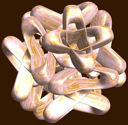 Keywords: mathematica 3d cg parametricplot3d texture torus 輪環 りんかん ドーナツ どーなつ 八芒星 はちぼうせい 八光星 はちこうせい 八稜星 はちりょうせい code program algorithm コード プログラム アルゴリズム geometric sculpture geometricsculpture shape geometry sculpture mapping テクスチャ マッピング 模様 もよう abstract 抽象 ちゅうしょう アブストラクト design pattern デザイン パターン graphic グラフィック グラフィクス structure 意匠 構造 symmetry 対称性 たいしょうせい シンメトリー 対称 たいしょう algorithm コード black background indoor a = 5; (* center hole size of a torus *) b = 8; (* octa-torus *) c = -4; (* distance from the center of rotation *) d = 4; (* number of torus *) h = 2; (* height of a torus *) SetOptions[ParametricPlot3D, PlotRange -> Full, Mesh -> None, Boxed -> False, Axes -> False, PlotPoints -> 400, ImageSize -> 3000, Background -> Darker[Orange, 0.8], PlotStyle -> Directive[Specularity[White, 30], Texture[Import["D:/tmp/861.jpg"]]], TextureCoordinateFunction -> ({#4, #5 2 Pi} &), Lighting -> "Neutral"]; f[v_] := Sin[2 Sin[Sin[Sin[v]]]]; x = (a - Cos[t] - f[b s]) Cos[s + Pi/(2 b)]; y = (a - Cos[t] - f[b s]) Sin[s + Pi/(2 b)]; z = (a - Sin[t] - h f[b s]) + c; rm = Table[{x, y, z}.RotationMatrix[2 i Pi/d, {1, 0, 0}], {i, d}]; ParametricPlot3D[rm, {t, 0, 2 Pi}, {s, 0, 2 Pi}] (*--- The Texture *) a = 5; (* center hole size of a torus *) b = 8; (* octa-torus *) c = -4; (* distance from the center of rotation *) d = 4; (* number of torus *) h = 2; (* height of a torus *) SetOptions[ParametricPlot3D, PlotRange -> Full, Mesh -> None, Boxed -> False, Axes -> False, PlotPoints -> 400, ImageSize -> 3000, Background -> Darker[Orange, 0.8], PlotStyle -> Directive[Specularity[White, 30], Texture[Import["D:/tmp/861.jpg"]]], TextureCoordinateFunction -> ({#4, #5 2 Pi} &), Lighting -> "Neutral"]; f[v_] := Sin[2 Sin[Sin[Sin[v]]]]; x = (a - Cos[t] - f[b s]) Cos[s + Pi/(2 b)]; y = (a - Cos[t] - f[b s]) Sin[s + Pi/(2 b)]; z = (a - Sin[t] - h f[b s]) + c; rm = Table[{x, y, z}.RotationMatrix[2 i Pi/d, {1, 0, 0}], {i, d}]; ParametricPlot3D[rm, {t, 0, 2 Pi}, {s, 0, 2 Pi}] (*--- The Texture *) |