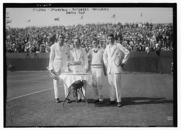 Keywords: 4-loc-bain t-vr bj-dw.jpg en Tilden with Bill Johnston Vinnie Richards and Dick Williams won the Davis Cup for the third straight year in 1922 1922 http //www loc gov/pictures/item/ggb2006010275/ via http //marshalljonfisher wordpress com/files/2009/02/4-loc-bain_t-vr_bj-dw jpg author 2012011910000538 Custom license marker 2012 01 18 PD-old PD-heirs Uploaded with UploadWizard A Terrible Splendor Bill Tilden |