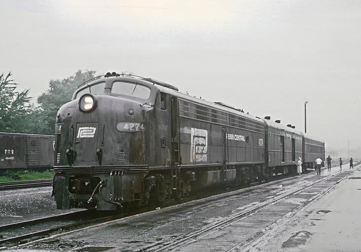 Keywords: railroad vehicle train locomotive outdoor PC 4274 (E8A) with Train 575, The Buffalo Day Express, at Williamsport, PA on July 20, 1969. PC 4274 (E8A) with Train 575, The Buffalo Day Express, at Williamsport, PA on July 20, 1969. PC 4274 (E8A) with Train 575, <i>The Buffalo Day Express</i>, at Williamsport, PA on July 20, 1969.