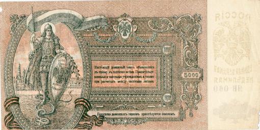 | Keywords: Донские деньги - 5000 рублей. Аверс. 1919. Ростов.jpg Донские деньги 5000 ублей еве с 1919 Ростов-на-Дону еловой конт ольный знак РОССIЯ ЕДИ АЯ ВЕЛИКАЯ ЕДѢЛИ АЯ Изоб ажёна аллего ия Святого Белого Дела на фоне К емля Всевеликое Войско Донское 1919 год выпуска Ростов-на-Дону 1919 год свой скан бумажных денег оциф овка 2007 года Разместил Викто Визу 1919 currency Original upload log ru wikipedia ftcg page ru wikipedia D0 94 D0 BE D0 BD D1 81 D0 BA D0 B8 D0 B5_ D0 B4 D0 B5 D0 BD D1 8C D0 B3 D0 B8_-_5000_ D1 80 D1 83 D0 B1 D0 BB D0 B5 D0 B9 _ D0 90 D0 B2 D0 B5 D1 80 D1 81 _1919 _ D0 A0 D0 BE D1 81 D1 82 D0 BE D0 B2 jpg wikitable - 08 52 4 August 2007 8 781 × 4 407 5 904 676 bytes Vizu w ru <nowiki></nowiki> Banknotes of Don 1919 Banknotes with a face value of 5000 |