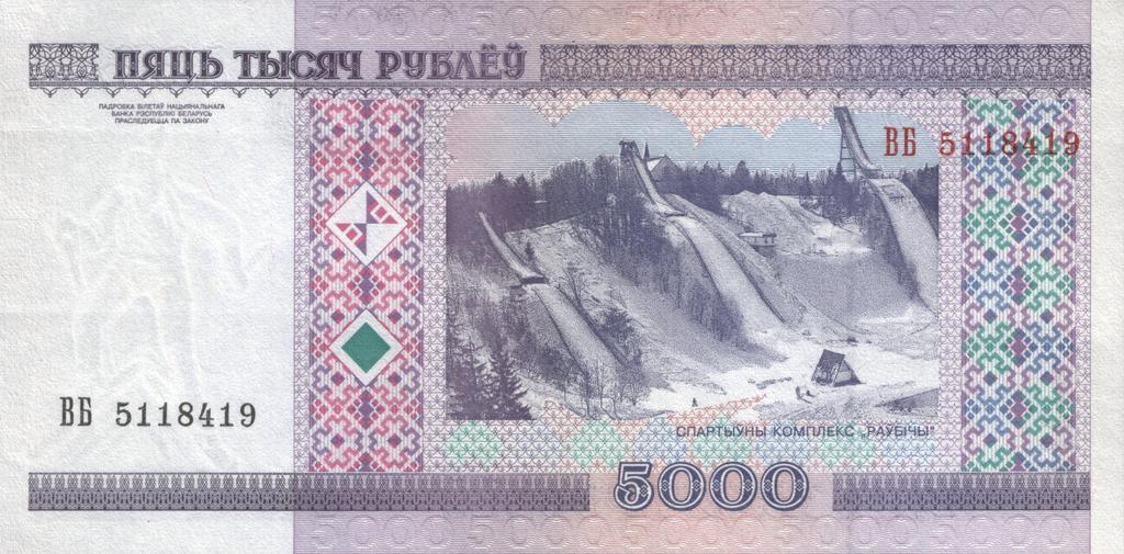 Keywords: 5000-rubles-Belarus-2000-b.jpg 5000 ублей Бело уссии 2000 5000 roubles of Belarus 2000 own scan 2000 National Bank of Republic of Belarus ациональный банк Республики Бела усь ацыянальны Банк Рэспублiкi Бела усь PD-BY-exempt banknotes Banknotes of Belarus 2000 Sport Complex in Raŭbičy Banknotes with a face value of 5000 Purple banknotes Sports venues on banknotes |