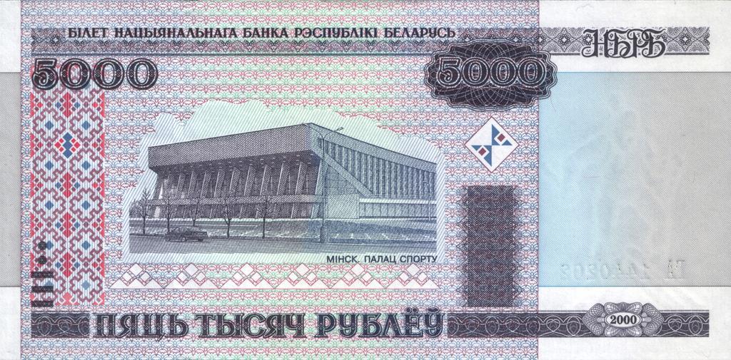 Keywords: 5000-rubles-Belarus-2011-f.jpg 5 000 ублей Бело уссии 2011 5 000 roubles of Belarus 2011 own scan 2011 National Bank of Republic of Belarus ациональный банк Республики Бела усь ацыянальны Банк Рэспублiкi Бела усь PD-BY-exempt banknotes Banknotes of Belarus 2000 Banknotes with a face value of 5000 Purple banknotes Sports venues on banknotes Minsk Sports Palace |