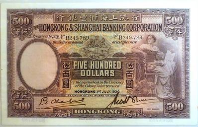 View Original: | 500 dollar note, Hong Kong & Shanghai Banking Corporation, 1930 - Hong Kong Museum of History - DSC01016.JPG (5174x3327) | |||
