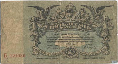 | Keywords: Одесса 50 1917 аверс.jpg Одесские деньги - 50 ублей аве с 1918 Цвет неестественный Одесское казначейство 1918 год выпуска Одесса 1918 http //www bonistika net/index php site 1 par 1 id 7 1918 currency Original upload log ru wikipedia ftcg page ru wikipedia D0 9E D0 B4 D0 B5 D1 81 D1 81 D0 B0_50_1917_ D0 B0 D0 B2 D0 B5 D1 80 D1 81 jpg wikitable - 23 53 24 September 2007 800 × 439 86 569 bytes Vizu w ru <nowiki> Описание Авто В емя создания Источник </nowiki> Banknotes of Odessa 1917 1919 Banknotes with a face value of 50 |