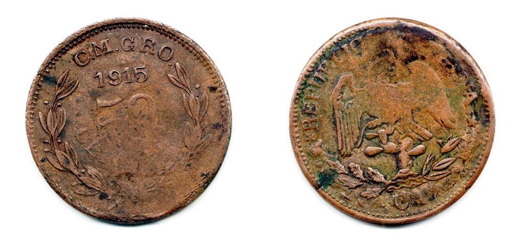 Keywords: 50 centavos de Campo Morado de 1915 (1)(cobre)(anverso y reverso).jpg es Moneda de cobre de 50 centavos acuñada en Campo Morado México en 1915 2012-01-30 Mi colección de Monedas Fuerzas revolucionarias PD-Mexico cc-zero Uploaded with UploadWizard Coins of Mexico |