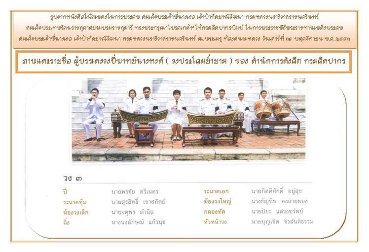 Keywords: 51-11-15-FAD TMO-3J03DL.jpg th ตัดตอนและปรับปรุงมาจากหนังสือโน๊ต พลงในการพระศพ สม ด็จพระ จ้าพี่นาง ธอ จ้าฟ้ากัลยาณิวัฒนา กรมหลวงนราธิวาสราชนครินทร์ สม ด็จพระ ทพรัตนราชสุดาสยามบรมราชกุมารี ทรงพระกรุณาโปรด กล้าฯให้กรมศิลปากรพิมพ์ ในการพระราชพิธีพระราชทาน พลิงพระศพ สม ด็จพระ จ้าพี่นาง ธอ จ้าฟ้ากัลยาณิวัฒนา กรมหลวงนราธิวาสราชนครินทร์ ณ พระ มรุ ท้องสนามหลวง วัน สาร์ที่ ๑๕ พฤศจิกายน พ ศ ๒๕๕๑ own malakoa 51-11-15 Music of Thailand |