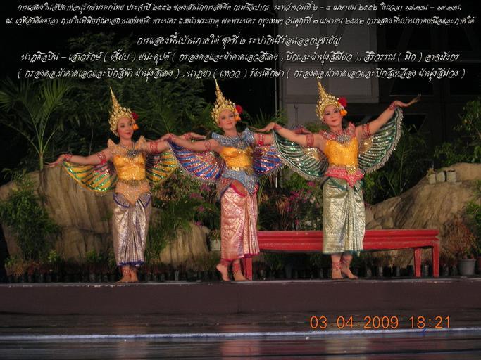 Keywords: 520403-ระบำกินรีร่อน7994-DL.JPG th ระบำกินรีร่อนออกบูชายัญ นาฏศิลปิน - สาวรักษ์ จี๊ยบ ยมะคุปต์ กรองคอและ ้าคาด อวสีแดง ปีกและ ้านุ่งสี ขียว สิริวรรณ มิก อาจมังกร กรองคอ ้าคาด อวและปีกสีฟ้า ้านุ่งสีแดง นาฏยา แหวว รัตนศึกษา กรองคอ ้าคาด อวและปีกสี หลือง ้านุ่งสีม่วง ๒ ระบำกินรีร่อนออกบูชายัญ ป็นระบำชุดหนึ่งที่ท่าน ู้หญิงแ ้ว สนิทวงศ์ สนี ู้ ชี่ยวชาญนาฏศิลป์ไทยและศิลปินแห่งชาติ ได้ประดิษฐ์ท่ารำให้มีลีลาอ่อนช้อย งดงาม กับทั้งสอดแทรกความร่า ริงของ หล่ากินรี ที่โ ินบินมา ริงระบำกันอย่างสนุกสนาน โดยให้ ข้ากับท่วงทำนองและจังหวะ พลง บางครั้งรำก่อนมโนราห์บูชายัญ หรือบางครั้งก็รำต่อท้ายมโนราห์บูชายัญ รูปถ่าย อง malakoa Classical dance of Thailand |