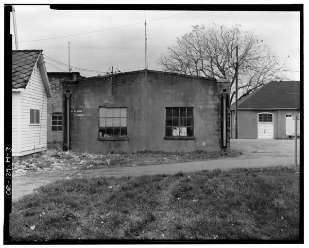 | Keywords: 5495 Chugath Street Electrical Shop - general view of east side elevation - Chemawa Indian School - Salem Oregon.jpg en Chemawa Indian School Electrical Shop 5495 Chugach Street Northeast Salem Marion County OR CALL NUMBER HABS ORE 24-SAL 1M- NOTE Survey number HABS OR-129-M DIGID http //hdl loc gov/loc pnp/hhh or0052 LOC card 5495 Chugach St N E Stuccoed concrete block rectangular with side additon sic 22' three-bay front x 23' one story flat roof Built 1935; addition built by students 1954; demolished 1978 First used as dry-cleaning shop; later paint and oils house 4 ext photos 1977 1 int photo 1977 Also see Chemawa Indian School OR-129 Card prepared 1979 Library of Congress Steve Viale 1977-11 OR-129-M Chemawa Indian School |