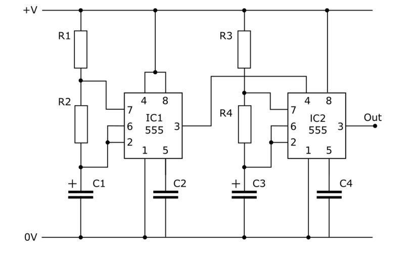 Keywords: 555 Double Bleeper.svg Circuit Diagram of a 555 Double Astable Bleeper Own drawing made in Inkscape 0 43 2006-06-24 jjbeard PD 555 timer IC Astable circuits