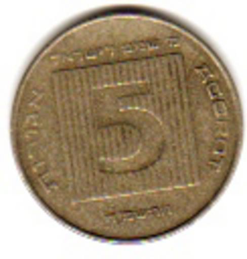 MAKE A MEME View Large Image 5 agurot special edition.jpg Front side of 5 Israeli agurot coin special edition on Israel's 40th independence day 1988 Scanned 2008-01-24 Wierzba Free Use Israeli new sheqel coins