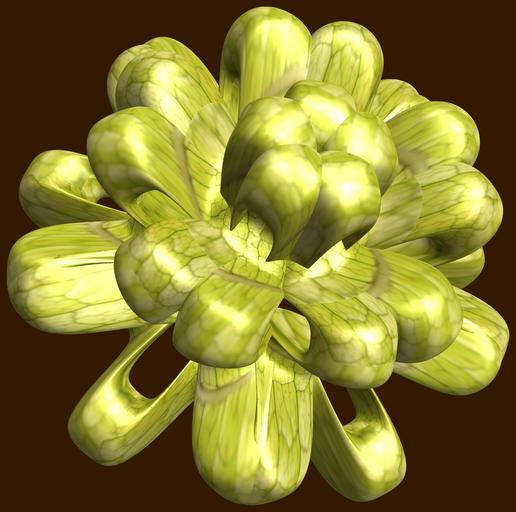 Keywords: mathematica 3d cg parametricplot3d texture torus 輪環 りんかん ドーナツ どーなつ 六芒星 ろくぼうせい 六光星 ろくこうせい 六稜星 ろくりょうせい code program algorithm コード プログラム アルゴリズム hexagram geometric sculpture geometricsculpture shape geometry sculpture mapping テクスチャ マッピング 模様 もよう abstract 抽象 ちゅうしょう アブストラクト design pattern デザイン パターン graphic グラフィック グラフィクス structure 意匠 構造 symmetry 対称性 たいしょうせい シンメトリー 対称 たいしょう algorithm コード black background organic pattern macro plant flower indoor bouquet bright a = 3; (* center hole size of a torus *) b = 6; (* hexa-torus *) c = 0; (* distance from the center of rotation *) d = 5; (* number of torus *) h = 1; (* height of a torus *) SetOptions[ParametricPlot3D, PlotRange -> Full, Mesh -> None, Boxed -> False, Axes -> False, PlotPoints -> 400, ImageSize -> 3000, Background -> Darker[Orange, 0.8], PlotStyle -> Directive[Specularity[White, 30], Texture[Import["D:/tmp/71.jpg"]]], TextureCoordinateFunction -> ({#4 , #5 2 Pi} &), Lighting -> "Neutral"]; f[v_] := Sin[2 Sin[Sin[Sin[v]]]]; x = (a - Cos[t] - f[b s]) Cos[s] + c; y = (a - Cos[t] - f[b s]) Sin[s] + c; z = (a - Sin[t] - h f[b s]) ; rot = Table[{x, y, z}.RotationMatrix[2 i Pi/d, {1, 1, 1}], {i, d}]; ParametricPlot3D[rot, {t, 0, 2 Pi}, {s, 0, 2 Pi}] (*--- The Texture is this: www.flickr.com/photos/tanaka_juuyoh/5239255695/ *) a = 3; (* center hole size of a torus *) b = 6; (* hexa-torus *) c = 0; (* distance from the center of rotation *) d = 5; (* number of torus *) h = 1; (* height of a torus *) SetOptions[ParametricPlot3D, PlotRange -> Full, Mesh -> None, Boxed -> False, Axes -> False, PlotPoints -> 400, ImageSize -> 3000, Background -> Darker[Orange, 0.8], PlotStyle -> Directive[Specularity[White, 30], Texture[Import["D:/tmp/71.jpg"]]], TextureCoordinateFunction -> ({#4 , #5 2 Pi} &), Lighting -> "Neutral"]; f[v_] := Sin[2 Sin[Sin[Sin[v]]]]; x = (a - Cos[t] - f[b s]) Cos[s] + c; y = (a - Cos[t] - f[b s]) Sin[s] + c; z = (a - Sin[t] - h f[b s]) ; rot = Table[{x, y, z}.RotationMatrix[2 i Pi/d, {1, 1, 1}], {i, d}]; ParametricPlot3D[rot, {t, 0, 2 Pi}, {s, 0, 2 Pi}] (*--- The Texture is this: www.flickr.com/photos/tanaka_juuyoh/5239255695/ *)