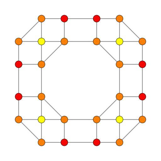 Keywords: 5-cube t014 B2.svg en 5-cube family graph in B2 en Coxeter plane own 10/11/10 self Set of colored Coxeter plane graphs; 28 vertices