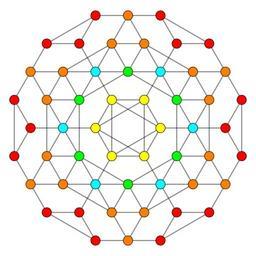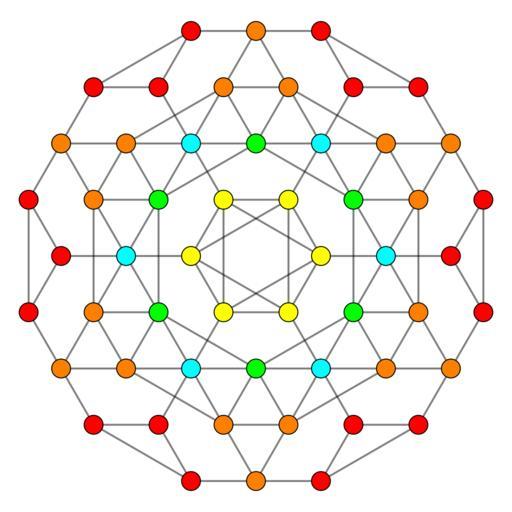 Keywords: 5-cube t23 B3.svg en 5-cube family graph in B3 en Coxeter plane own 10/11/10 self Set of colored Coxeter plane graphs red orange yellow green vertices