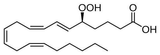 Keywords: 5-Hydroperoxyeicosatetraenoic acid.svg Chemical structure of leukotriene 5-Hydroperoxyeicosatetraenoic acid 5-HPETE Selfmade with ChemDraw 2006-08 Calvero PD Polyunsaturated fatty acids Organic hydroperoxides