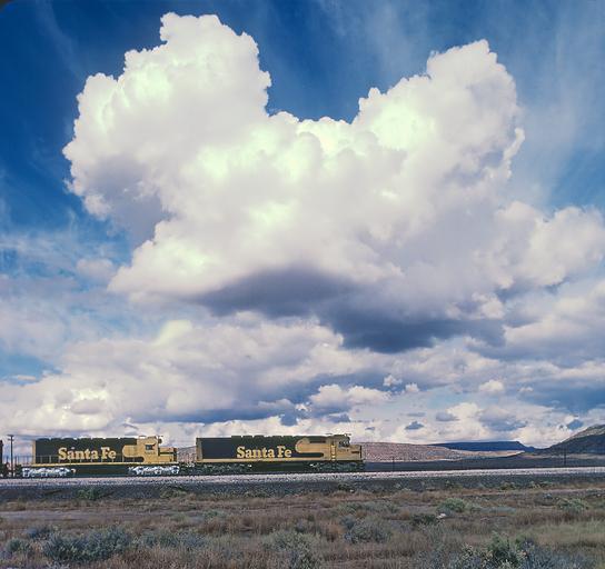 Back when "cloud" meant a cloud. AT&SF 5264 in October 1985. santafe atsf 5 of Less Conventional Shots by Roger Puta (28600454185).jpg en Roger did not annotate any of these slides so any help you can provide to fill out a caption will be greatly appreciated <br> Back when cloud meant a cloud AT SF 5264 in October 1985 2016-07-27 21 37 13 https //www flickr com/people/129679309 N05 railfan 44 https //www flickr com/photos/129679309 N05/28600454185/ User Fæ/Flickr API Puta's AT SF BN and pre BN fallen flags Western Railroads Steel Rails Across North America North American Railroads Railroad Photographer USA/Canada Railroad Picture Hall of Fame Railroad Photography Junction Santa Fe AT SF Mel Finzer RogerPuta Photographs by Roger Puta Photos uploaded from Flickr by Fæ using a script 1985 in rail transport in the United States |