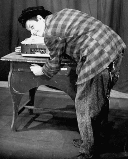 | Keywords: 5. Poslednata lenta na Krap.jpg mk сцена од п етставата Последната лента на К ап на Семјуел Бекет во ежија на Бо е Ангеловски 1969 год Krapp's Last Tape directed by Macedonian theatre director Bore Angelovski own Lazarevsky 1969 Bore Angelovski Samuel Beckett 1969 in theatre |