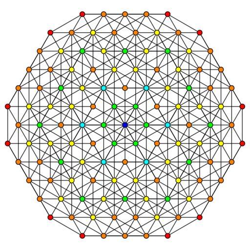Keywords: 5-simplex t0124.svg en en 5-simplex family polytope graph in A5 Coxeter plane own Tomruen Set of colored Coxeter plane graphs; 121 vertices Simplex