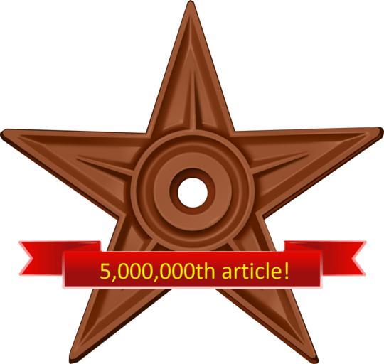 Keywords: 5M article barnstar.png five million articles in Wikipedia 2015-11-01 File Original Barnstar png Mikael Häggström from original by SunirShah other versions Custom license marker 2015 11 01 SunirShah meta Wikimedia barnstars Uploaded with UploadWizard |