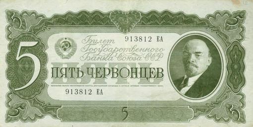 Keywords: 5roubles1937b.JPG Soviet money bill 5 че вонцев 50 ублей 1937 Front See also other side Image 5roubles1937a jpg http //tygra ru/v 2/cdrom/dengi shtml CDROM Деньги by Tygra RU 1937 Ivan Dubasov / И И Дубасов PD-RU-exempt banknotes PD-old Banknotes of the Soviet Union 1937 Vladimir Lenin on banknotes Banknotes with a face value of 5 Green banknotes |