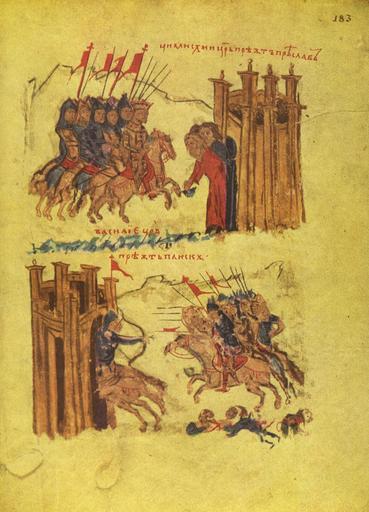 | Keywords: 65-manasses-chronicle.jpg иниатю а 65 от анасиевата летопис 14 век Завладяването на П еслав от Йоан Цимисхий и на Плиска от Василий II Miniature 65 from the Constantine Manasses Chronicle 14 century John I Tzimiskes conquers Preslav and Basil II conquers Pliska Скани ана от книгата иниатю и на анасиевата летопис Иван Дуйчев Издателство Бълга ски художник София 1962 Scanned from book Miniatures from the Manasses Chronicle Ivan Duichev Bulgarski hudojnik Publishing house Sofia 1962 Original 14 century Original Constantine Manasses PD-Art PD-Art-100 Constantine Manasses Chronicle Byzantine-Bulgarian Wars Ioannes I Tzimiskes Basileios II History of Veliki Preslav History of Pliska Cities of Bulgaria in art Veliki Preslav in art |