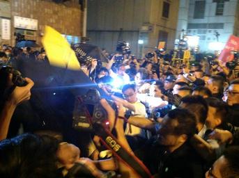 Keywords: 香港各界發起反人大釋法大遊行和集會 69.jpg zh-tw 中 人大常委 11 7日將就香港 年新政兩位議員宣誓風波,對基 法 宣誓 例宣布釋法內容之際,香港民間人權陣線星 天發起各界 反對釋法大遊行 和集 ,抗議人大 香港高等法院審理 宣誓風波司法覆核案 間,主動對基 法第104 釋法,破壞香港獨立的司法制度 香港民陣發起反釋法大遊行後,數以千計的示威 繼續遊行到西環的中聯辦抗議人大釋法 8點半左右,示威 手舉雨傘再次沖擊警方防線,警方則狂噴辣椒噴劑還擊 警方調派大批警員增援,並將配備防暴頭盔的警員派至 線與示威 對峙 警方不斷呼籲示威 持冷 ,不要 擊警方防線,要求示威 盡快離開 9點前, 中聯辦外與警察對峙的示威 突然撤離,輕 西 警署外的徳輔道西和西邊街道口,現場雙向交 中斷, 場自2014年雨傘運動後的佔領行動 醞 中,現場至少 幾千之 十多分鐘後,警方開始廣 播,要求佔路人士離開 示威 9點過後佔據了中聯辦外 段德輔道,並 中聯辦後 外與警方防線展開推撞,警方用辣椒噴 還擊將示威 防線推後 示威 不斷呼喊反對釋法 警方 中聯辦西邊的 光街路口佈署第二道防線,並 警員從路旁的西 警署裡向警察傳遞防暴盾牌 步部署防線 目前還不清楚警方何時清場 2016-11-06 19 54 27 http //www voachinese com/a/hk-protest-20161106/3583208 html 海彥 other versions Custom license marker 2016 11 06 PD-USGov-VOA Occupy Sai Wan |