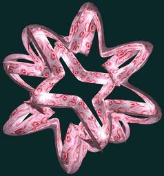Keywords: mathematica 3d cg parametricplot3d texture torus 輪環 りんかん ドーナツ どーなつ 四芒星 しぼうせい 四光星 しこうせい 四稜星 しりょうせい code program algorithm コード プログラム アルゴリズム geometric sculpture geometricsculpture shape geometry sculpture mapping テクスチャ マッピング 模様 もよう abstract 抽象 ちゅうしょう アブストラクト design pattern デザイン パターン graphic グラフィック グラフィクス structure 意匠 構造 symmetry 対称性 たいしょうせい シンメトリー 対称 たいしょう algorithm コード blossom black background plant outdoor a = 3; (* center hole size of a torus *) b = 4; (* tetra-torus *) c = 3; (* distance from the center of rotation *) d = 6; (* number of torus *) h = 1; (* height of a torus *) SetOptions[ParametricPlot3D, PlotRange -> Full, Mesh -> None, Boxed -> False, Axes -> False, PlotPoints -> 400, ImageSize -> 3000, Background -> RGBColor[{10, 40, 40}/255], PlotStyle -> Directive[Specularity[White, 30], Texture[Import["D:/tmp/86.jpg"]]], TextureCoordinateFunction -> ({#4, #5 2 Pi} &), Lighting -> "Neutral"]; f[v_] := Cos[2 Cos[Cos[Cos[v]]]]; x = (a - f[t] - Sin[b s]) Cos[s + Pi/(2 b)]; y = (a - f[t] - Sin[b s]) Sin[s + Pi/(2 b)]; z = (Sin[t/2] - h Sin[b s]) + c; rot = Table[{x, y, z}.RotationMatrix[2 i Pi/d, {1, 1, 0}], {i, d}]; ParametricPlot3D[rot, {t, 0, 2 Pi}, {s, 0, 2 Pi}] (*--- The Texture *) a = 3; (* center hole size of a torus *) b = 4; (* tetra-torus *) c = 3; (* distance from the center of rotation *) d = 6; (* number of torus *) h = 1; (* height of a torus *) SetOptions[ParametricPlot3D, PlotRange -> Full, Mesh -> None, Boxed -> False, Axes -> False, PlotPoints -> 400, ImageSize -> 3000, Background -> RGBColor[{10, 40, 40}/255], PlotStyle -> Directive[Specularity[White, 30], Texture[Import["D:/tmp/86.jpg"]]], TextureCoordinateFunction -> ({#4, #5 2 Pi} &), Lighting -> "Neutral"]; f[v_] := Cos[2 Cos[Cos[Cos[v]]]]; x = (a - f[t] - Sin[b s]) Cos[s + Pi/(2 b)]; y = (a - f[t] - Sin[b s]) Sin[s + Pi/(2 b)]; z = (Sin[t/2] - h Sin[b s]) + c; rot = Table[{x, y, z}.RotationMatrix[2 i Pi/d, {1, 1, 0}], {i, d}]; ParametricPlot3D[rot, {t, 0, 2 Pi}, {s, 0, 2 Pi}] (*--- The Texture *) |