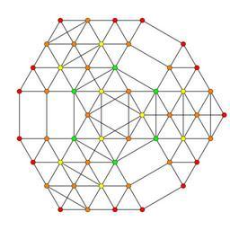 Keywords: 6-simplex t0124 A2.svg en en 6-simplex family graph in A2 en Coxeter plane own Tomruen Set of colored Coxeter plane graphs red orange yellow green vertices