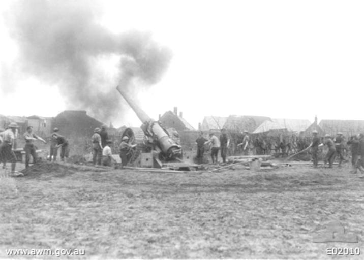| Keywords: 6inchMkVIIGunBeaumetz21April1917-2.jpeg A 6 inch naval gun firing from the outskirts of Beaumetz-lès-Loges in France during the attacks by the Australian troops at Bullecourt <br>Comment This was part of the preliminary bombardment for the Second Battle of Bullecourt <br>See also Image 6inchMkVIIGunBeaumetz21April1917 jpeg NOTE This version of the photograph has brightness and contrast artificially increased to highlight details E02010 1917-04-28 Photographer Copyright clear PD-AustraliaGov BL 6 inch Mk VII field gun Arras 1917 Second Battle of Bullecourt 1917 BL 06 inch gun World War I forces of Britain in France Arras 1917 Black and white photographs of guns |