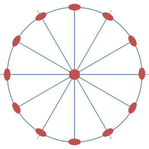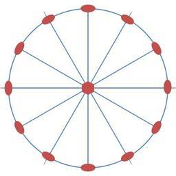 Keywords: 6mmm point group.png en Stereographic representation of the symmetry point group 6/mmm The 001 direction is perpendicular to the projection plane The mirror planes are represented in blue the rotation axes in red The thin black ticks show the direction of the equivalent crystallographic axes a1 a2 and a3 fr Représentation stéréographique du groupe ponctuel de symétrie 6/mmm La direction 001 est perpendiculaire au plan de projection Les plans miroirs sont représentés en bleu les axes de rotation en rouge Les trait fins noirs montrent la direction des axes cristallographiques équivalents a1 a2 et a3 own Perditax 2011-06-06 Cc-zero Point groups |