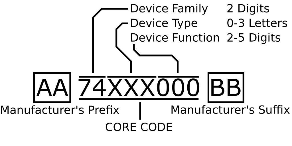 Keywords: 74 Series Code.svg The meaning of the code on 74 and 54 Series ICs Made in Inkscape 0 43 2005-06-30 Inductiveload PD 7400 Series