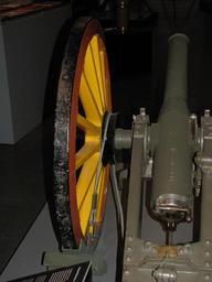 Keywords: 75 mm Meiji 31 mountain gun Hämeenlinna 3.JPG en Primitive semi-rigid recoil system of the Japanese 75 mm Meiji 31 mountain gun The recoil pushes the gun backwards the spikes cause the wheels to rotate tighthening the wires connected to springs The springs rotate the wheels forward pulling the gun back to position fi Japanilaisen 75 mm Meiji 31 vuorikanuunan alkeellinen puolijäykkä rekyylinvaimennin Rekyylin työntäessä tykkiä taaksepäin pyörien piikkeihin kiinnitetyt vaijerit kiristyvät Vaijerin toisessa päässä oleva jousi jännittyy ja palauttaa tykin alkuasentoon own MKFI 2010-09-05 61 0 20 19 N 24 27 23 84 E region FI Type 31 75 mm Mountain Gun Finnish Artillery Museum Taken with Canon PowerShot SX10 IS Files by User MKFI |