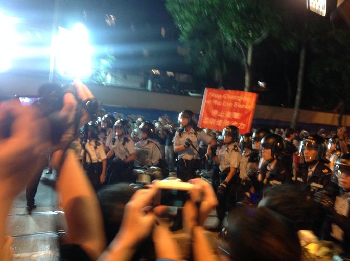 Keywords: 香港各界發起反人大釋法大遊行和集會 77.jpg zh-tw 中 人大常委 11 7日將就香港 年新政兩位議員宣誓風波,對基 法 宣誓 例宣布釋法內容之際,香港民間人權陣線星 天發起各界 反對釋法大遊行 和集 ,抗議人大 香港高等法院審理 宣誓風波司法覆核案 間,主動對基 法第104 釋法,破壞香港獨立的司法制度 香港民陣發起反釋法大遊行後,數以千計的示威 繼續遊行到西環的中聯辦抗議人大釋法 8點半左右,示威 手舉雨傘再次沖擊警方防線,警方則狂噴辣椒噴劑還擊 警方調派大批警員增援,並將配備防暴頭盔的警員派至 線與示威 對峙 警方不斷呼籲示威 持冷 ,不要 擊警方防線,要求示威 盡快離開 9點前, 中聯辦外與警察對峙的示威 突然撤離,輕 西 警署外的徳輔道西和西邊街道口,現場雙向交 中斷, 場自2014年雨傘運動後的佔領行動 醞 中,現場至少 幾千之 十多分鐘後,警方開始廣 播,要求佔路人士離開 示威 9點過後佔據了中聯辦外 段德輔道,並 中聯辦後 外與警方防線展開推撞,警方用辣椒噴 還擊將示威 防線推後 示威 不斷呼喊反對釋法 警方 中聯辦西邊的 光街路口佈署第二道防線,並 警員從路旁的西 警署裡向警察傳遞防暴盾牌 步部署防線 目前還不清楚警方何時清場 2016-11-06 21 12 29 http //www voachinese com/a/hk-protest-20161106/3583208 html 海彥 other versions Custom license marker 2016 11 06 PD-USGov-VOA Occupy Sai Wan |