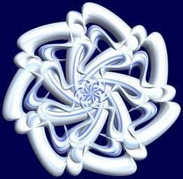Keywords: mathematica 3d cg parametricplot3d texture torus 輪環 りんかん ドーナツ どーなつ 六芒星 ろくぼうせい 六光星 ろくこうせい 六稜星 ろくりょうせい program プログラム code コード algorithm コード アルゴリズム hexagram geometric sculpture geometricsculpture shape geometry sculpture mapping テクスチャ マッピング 模様 もよう design pattern デザイン パターン graphic グラフィック グラフィクス structure 意匠 構造 symmetry 対称性 たいしょうせい シンメトリー 対称 たいしょう algorithm indoor black background tangle bright SetOptions[ParametricPlot3D, PlotRange -> Full, Mesh -> None, Boxed -> False, Axes -> None, PlotPoints -> 400, ImageSize -> 1000, PlotStyle -> Directive[Specularity[White, 30], Texture[Import["D:/tmp/863.jpg"]]], TextureCoordinateFunction -> ({#4 + 2 #5, #5/Pi} &), Lighting -> "Neutral"]; a = 4; (* center hole size of a torus *) b = 6; (* hexa-torus *) c = 3; (* distance from the center of rotation *) d = 7; (* number of torus *) f[v_] := Sum[Sin[(2 k - 1) v]/(2 k - 1), {k, 4}]; x = (a - Cos[t] - Sin[b s]) Cos[s + Pi/(2 b)] + c; y = Sin[t] + c; z = (a - Cos[t] - Sin[b s]) f[s + Pi/(2 b)] + c; rot = Table[{x, y, z}.RotationMatrix[2 i Pi/d, {0, 1, 0}], {i, d}]; ParametricPlot3D[rot, {t, 0, 2 Pi}, {s, 0, 2 Pi}] (*--- The Texture The g[] is a 4-partial sum of the Fourier series for Square wave. g[]は矩形波のフーリエ展開の最初の4項 *) SetOptions[ParametricPlot3D, PlotRange -> Full, Mesh -> None, Boxed -> False, Axes -> None, PlotPoints -> 400, ImageSize -> 1000, PlotStyle -> Directive[Specularity[White, 30], Texture[Import["D:/tmp/863.jpg"]]], TextureCoordinateFunction -> ({#4 + 2 #5, #5/Pi} &), Lighting -> "Neutral"]; a = 4; (* center hole size of a torus *) b = 6; (* hexa-torus *) c = 3; (* distance from the center of rotation *) d = 7; (* number of torus *) f[v_] := Sum[Sin[(2 k - 1) v]/(2 k - 1), {k, 4}]; x = (a - Cos[t] - Sin[b s]) Cos[s + Pi/(2 b)] + c; y = Sin[t] + c; z = (a - Cos[t] - Sin[b s]) f[s + Pi/(2 b)] + c; rot = Table[{x, y, z}.RotationMatrix[2 i Pi/d, {0, 1, 0}], {i, d}]; ParametricPlot3D[rot, {t, 0, 2 Pi}, {s, 0, 2 Pi}] (*--- The Texture The g[] is a 4-partial sum of the Fourier series for Square wave. g[]は矩形波のフーリエ展開の最初の4項 *) |