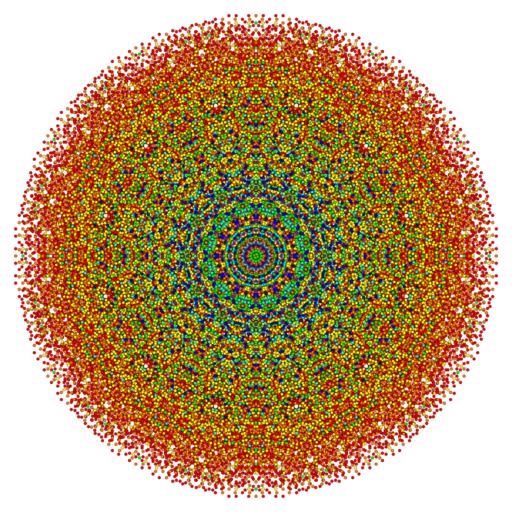 Keywords: 7-cube t012346 B6.svg en 7-cube family graph in B6 en Coxeter plane Vertices only no edges due to file sizes too large own 10/21/10 self Set of colored Coxeter plane graphs red orange yellow green vertices