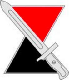 | Keywords: 7th Infantry Division Distinctive unit insignia.png en A silver color metal and enamel device 1 1/8 inches 2 86 cm in height consisting of an hourglass the upper section red the lower black the sections triangular in shape and separated diagonally by a silver bayonet point up pommel in lower right 2012-10-26 17 15 48 http //www tioh hqda pentagon mil/Heraldry/ArmyDUISSICOA/ArmyHeraldryUnit aspx u 3623 DoD PD-USGov 7th Infantry Division United States Hourglass shapes Uploaded with UploadWizard Bayonets |