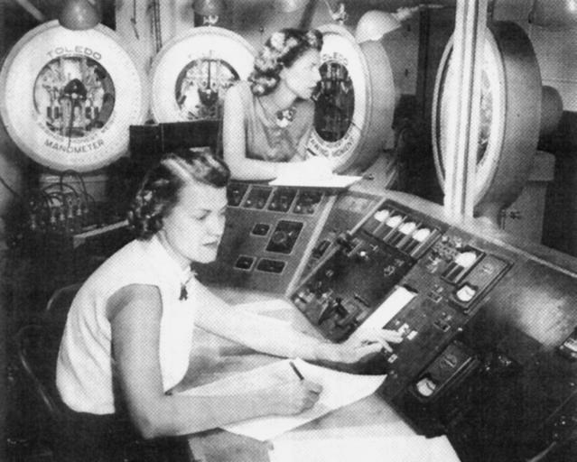 | Keywords: blackandwhite monochrome black and white (L-43363): The 7 x 10-Foot LSWT’s control console and balance scales were grouped together inside its test chamber. Here Hazel Redding and Billie Walker operate the tunnel and record data at the tunnel’s control console. (L-43363): The 7 x 10-Foot LSWT’s control console and balance scales were grouped together inside its test chamber. Here Hazel Redding and Billie Walker operate the tunnel and record data at the tunnel’s control console. | ||||