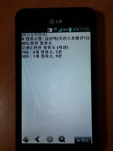 | Keywords: 휴대폰에서-8003-샵-05280(정류소번호)를-입력한-후-인터넷버튼을-누르시면-해당-정류소의-버스-도착-예정-정보를-확인하실-수-있습니다.jpg ko 구 내버스 안내방송 중 3 정류소 를 볼 수 없습니다 2016-03-17 own 웹브 우 other versions cc-zero Bus information BIS WINC Taken with LG Optimus Vu 3 Uncategorized 2016 November 20 |