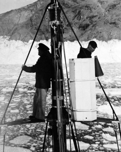 Keywords: blackandwhite monochrome outdoor black and white 80-CF-73186-7_Box 126: Greenland Expedition by USS Albemarle (AV 5) May-September 1941. Sixty-five feet above the deck of USS Bowdoin (IX-50), Lieutenant Commander Donald B. MacMillan, Polar Explorer, directs the Bowdoin within touching distance of this Greenland glacier, May 9, 1941. (2015/10/27). 80-CF-73186-7_Box 126: Greenland Expedition by USS Albemarle (AV 5) May-September 1941. Sixty-five feet above the deck of USS Bowdoin (IX-50), Lieutenant Commander Donald B. MacMillan, Polar Explorer, directs the Bowdoin within touching distance of this Greenland glacier, May 9, 1941. (2015/10/27). |