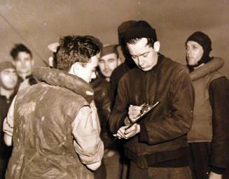 Keywords: indoor 80-G-205352: USS Card (CVE 11) takes care of the survivors of USS Leary (DD 158) which was torpedoed and sunk December 24, 1943. Shown: S2c Stanley C. Rogoynski coming aboard as a Yeoman takes his name. Photograph released December 25, 1943. Official U.S. Navy photograph, now in the collections of the National Archives. (2016/11/15). 80-G-205352: USS Card (CVE 11) takes care of the survivors of USS Leary (DD 158) which was torpedoed and sunk December 24, 1943. Shown: S2c Stanley C. Rogoynski coming aboard as a Yeoman takes his name. Photograph released December 25, 1943. Official U.S. Navy photograph, now in the collections of the National Archives. (2016/11/15). |