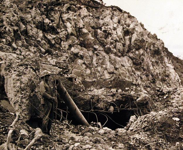 Keywords: outdoor landscape monochrome 80-G-304846: Battle for Iwo Jima, February-March 1945. A wave of Fourth Division Marines beginning an attack from the beach at Iwo Jima. The rugged cliff above made this mighty Japanese emplacement at the foot of Mount Suribachi almost completely impregnable. This photograph of the wrecked gun was taken on the fifth day of the Iwo Jima struggle. Photograph released February 24, 1945. U.S. Navy Photograph now in the collections of the National Archives. (2016/01/19). 80-G-304846: Battle for Iwo Jima, February-March 1945. A wave of Fourth Division Marines beginning an attack from the beach at Iwo Jima. The rugged cliff above made this mighty Japanese emplacement at the foot of Mount Suribachi almost completely impregnable. This photograph of the wrecked gun was taken on the fifth day of the Iwo Jima struggle. Photograph released February 24, 1945. U.S. Navy Photograph now in the collections of the National Archives. (2016/01/19). |