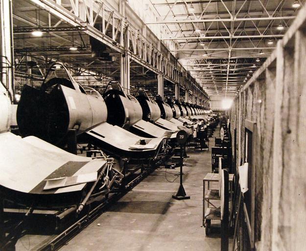 | Keywords: 80-G-42543: This is the last lap in the assembly-line process of the U.S. Navy’s famed fighter Corsair in the Chance Vought Division of United Aircraft at Stratford, Connecticut. At this point the front sections of the plane have been mounted on to the center section and electrical and hydraulic installations have been made. Soon engine controls, pilot’s equipment will be in place, the other sections joined on, and the plane will be ready for the first light of day. Photographed: August 5, 1943. Official U.S. Navy photograph, now in the collections of the National Archives. (2016/05/17). 80-G-42543: This is the last lap in the assembly-line process of the U.S. Navy’s famed fighter Corsair in the Chance Vought Division of United Aircraft at Stratford, Connecticut. At this point the front sections of the plane have been mounted on to the center section and electrical and hydraulic installations have been made. Soon engine controls, pilot’s equipment will be in place, the other sections joined on, and the plane will be ready for the first light of day. Photographed: August 5, 1943. Official U.S. Navy photograph, now in the collections of the National Archives. (2016/05/17). |