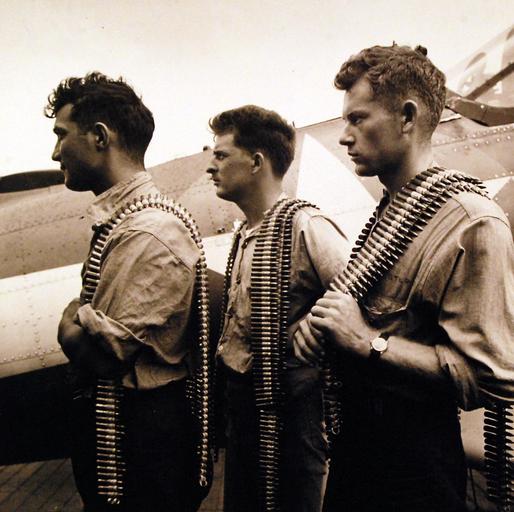 | Keywords: 80-G-470945: USS Saratoga (CV 3). Enlisted men with 30 caliber ammunition slung over their shoulders. Shown: ARM2 Joseph Setting; ARM2 Frank Peters; and ARM2 Robert Sylvester stand by to re-arm machine guns on SBD’s. Photographed by Lieutenant Wayne Miller, TR 2395, November 1943. Official U.S. Navy Photograph, now in the collections of the National Archives. (2016/11/09). 80-G-470945: USS Saratoga (CV 3). Enlisted men with 30 caliber ammunition slung over their shoulders. Shown: ARM2 Joseph Setting; ARM2 Frank Peters; and ARM2 Robert Sylvester stand by to re-arm machine guns on SBD’s. Photographed by Lieutenant Wayne Miller, TR 2395, November 1943. Official U.S. Navy Photograph, now in the collections of the National Archives. (2016/11/09). |