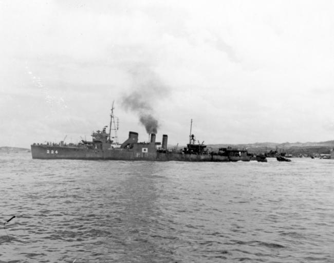 Keywords: blackandwhite monochrome outdoor vehicle boat black and white 80-G-496014: USS DD-224 (ex-USS Stewart, DD-224). Photographed circa Autumn 1945. Though the original caption identifies the location as Pearl Harbor, the background terrain and state of the ship's paintwork indicates that it was taken in Japanese waters, perhaps prior to her 29 October 1945 recommissioning for the voyage to the United States. In 1943-1945, the ship served as the Japanese Navy's Patrol Boat 102. She was recovered by the U.S. Navy after the end of World War II. Note the Japanese flag painted on her midships superstructure side, with "P102" showing faintly below. She carries Japanese radar antennas atop her pilothouse (a two-horn Mark 2, Model 2) and abaft her foremast (a ladder-shaped Type 3, Mark 1, Model 3). Official U.S. Navy Photograph, now in the collections of the National Archives. 80-G-496014: USS DD-224 (ex-USS Stewart, DD-224). Photographed circa Autumn 1945. Though the original caption identifies the location as Pearl Harbor, the background terrain and state of the ship's paintwork indicates that it was taken in Japanese waters, perhaps prior to her 29 October 1945 recommissioning for the voyage to the United States. In 1943-1945, the ship served as the Japanese Navy's Patrol Boat 102. She was recovered by the U.S. Navy after the end of World War II. Note the Japanese flag painted on her midships superstructure side, with "P102" showing faintly below. She carries Japanese radar antennas atop her pilothouse (a two-horn Mark 2, Model 2) and abaft her foremast (a ladder-shaped Type 3, Mark 1, Model 3). Official U.S. Navy Photograph, now in the collections of the National Archives. |