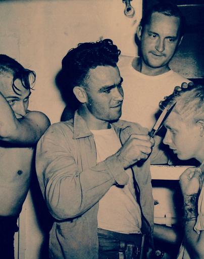 | Keywords: people groupshot indoor 80-G-88105: Ceremonies: Neptune Party. Neptune Party onboard USS Copahee (CVE 12), September 11, 1943. Shown: Haircuts for Scurvy Pollywogs by “Flags” SM1 Hohnsey. Official U.S. Navy Photograph, now in the collections of the National Archives. (2016/08/09). 80-G-88105: Ceremonies: Neptune Party. Neptune Party onboard USS Copahee (CVE 12), September 11, 1943. Shown: Haircuts for Scurvy Pollywogs by “Flags” SM1 Hohnsey. Official U.S. Navy Photograph, now in the collections of the National Archives. (2016/08/09). |