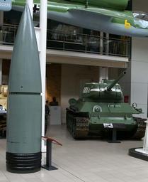 | Keywords: 80cm Gustav shell.jpg 80 cm Gustav shell photographed with a T-34/85 tank to give a sense of scale at the Imperial War Museum London Note the relative sizes of the floor tiles and plaque stand Сна яд для о удия До а Рядом советский танк Т-34-85 Obus du canon Dora http //upload wikimedia org/wikipedia/en/0/0b/80_cm_Gustav_shell_compared_to_T-34-85 jpg 04 55 3 September 2005 Megapixie public domain 80 cm K gun Krupp Ammunition World War II artillery ammunition 80 cm K T-34-85 tank at the Imperial War Museum London |