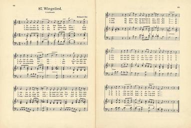 Keywords: 87 Wiegelied, pagina 114 & 115.jpg Kun je nog zingen zing dan mee Muziek en teksten origineel gepubliceerd voor 1900 own 1915 author PD-old Kun je nog zingen zing dan mee