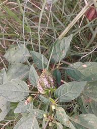 Keywords: கூவந்தி8.jpg en Botanical name - Physalis minima Common names - Native gooseberry; Wild cape gooseberry ;Ground Cherry; Sunberry Tamil names Kuvanti ; Kupanti Ayurvedic name - Chirpoti Ripe berry is sweet Plant is known for its analgesic action;Studies say tha the plant extract has shown anti-inflammatory; Effective for urinary problems ;Fruit has anti cancer property Picture - Watch the lines in typical 'bag'of 'Native gooseberry' ta கூவந்தி கூண்டாகத் தொங்கும் பை இச் செடியின் அடையாளமாகும்; இதற்குள்ளிருந்து வருவது மஞ்சள் பூ; பின்னனர் வரும் காய் இனிக்கும்; பழம் புற்றுநோய் போக்கவல்ல மருந்து; சிறுந ர் நோய்களுக்கு இம் மூலிகை மருந்தாகிறது; உடல் வலிக்கு மருந்தாகும் இத் தாவரம் ; களைச் செடியாகக் கருதப்படுவது கூண்டு என்பதைக் குறிக்கும் வேர்ச் சொல் கூ ; கூண்டுக்குள் விதை இருப்பதால் வதிவதால் கூவந்தி என்று பெயர் வந்திருக்கலாம் படத்தில் - கூவந்திச் செடிப் பை யிலுள்ள வரிகளைப் பாருங்கள் hi रसभर Rasbhari own Dr S Soundarapandian 2014-04-07 Own research Shot in Chennai Tamilnadu India 4 5 kms off sea-shore ; Latitude-13°02'20 N ; Longitude- 80°13'43 E ; Elevation from sea level - 6 7 m Physalis minima Cc-zero |