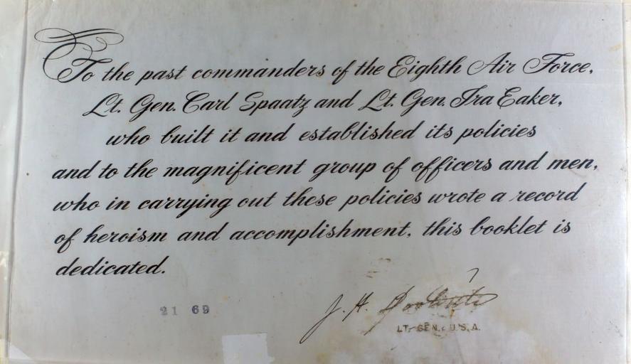 Keywords: 8th air force 8thairforce bombing world war two worldwartwo text writing document From the photo album "Strategic and Tactical Operations of the Eighth Air Force" which details the 8th Air Forces bombing campaign in Europe. Repository: San Diego Air and Space Museum Archive From the photo album "Strategic and Tactical Operations of the Eighth Air Force" which details the 8th Air Forces bombing campaign in Europe. Repository: San Diego Air and Space Museum Archive |