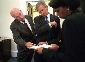 Keywords: washington d.c. dc u.s. national archives usnationalarchives president george w. bush presidentgeorgewbush 9/11 911 nara:arcid=5997267 george w. bush presidential library georgewbushpresidentiallibrary president george w. bush georgewbush national security adviser nationalsecurityadviser condoleezza rice condoleezzarice vice president vicepresident dick cheney dickcheney oval office ovaloffice white house whitehouse suit indoor Original Caption: President George W. Bush looks over a brief with Vice President Dick Cheney and National Security Adviser Condoleezza Rice in the Outer Oval Office of the White House. U.S. National Archives’ Local Identifier:P7176-33 Created By: President (2001-2009 : Bush). Office of Management and Administration. Office of White House Management. Photography Office. (01/20/2001 - 01/20/2009) From: Photographs Related to the George W. Bush Administration, compiled 01/20/2001 - 01/20/2009 Production Dates: 09/12/2001 Persistent URL: arcweb.archives.gov/arc/action/ExternalIdSearch?id=5997267 Repository: George W. Bush Library (Lewisville, TX) Access Restrictions: Unrestricted Use Restrictions: Unrestricted Original Caption: President George W. Bush looks over a brief with Vice President Dick Cheney and National Security Adviser Condoleezza Rice in the Outer Oval Office of the White House. U.S. National Archives’ Local Identifier:P7176-33 Created By: President (2001-2009 : Bush). Office of Management and Administration. Office of White House Management. Photography Office. (01/20/2001 - 01/20/2009) From: Photographs Related to the George W. Bush Administration, compiled 01/20/2001 - 01/20/2009 Production Dates: 09/12/2001 Persistent URL: arcweb.archives.gov/arc/action/ExternalIdSearch?id=5997267 Repository: George W. Bush Library (Lewisville, TX) Access Restrictions: Unrestricted Use Restrictions: Unrestricted |
